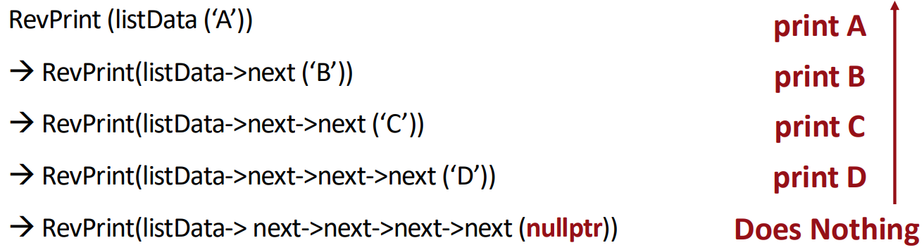 ▶ When RevPrint(listPtr) is called: