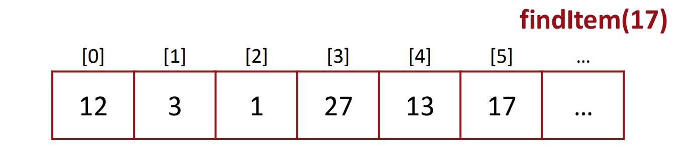 - Since list.data[3] != 17, it will call findItem(list, 17, 4).