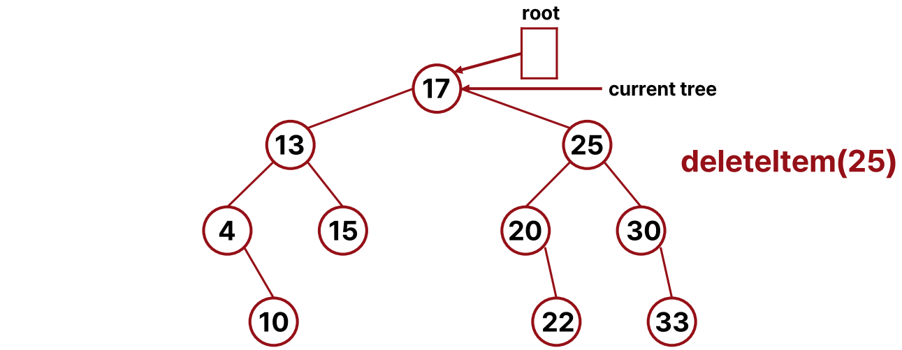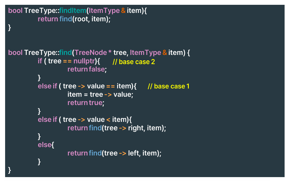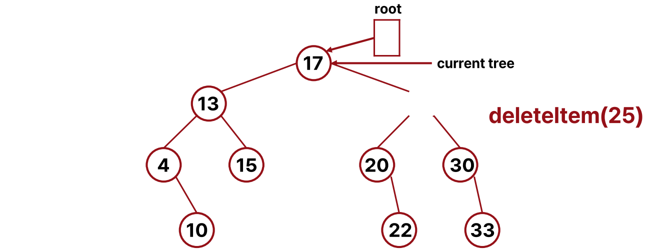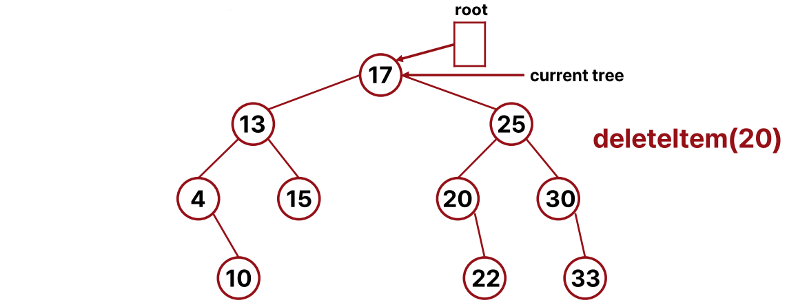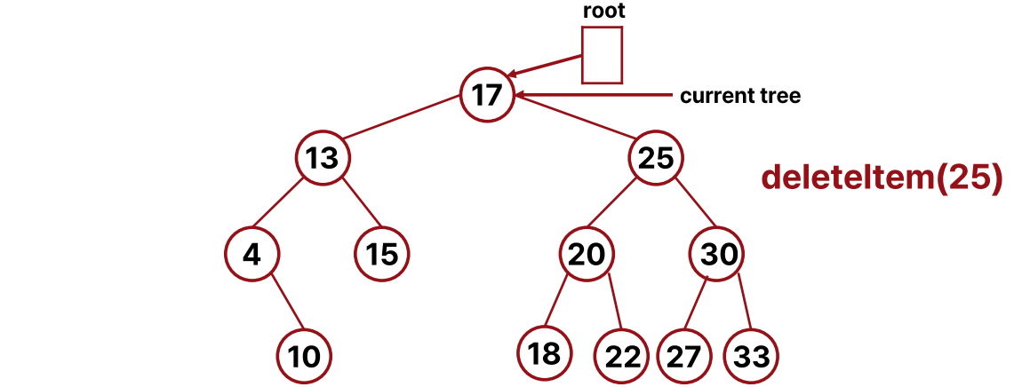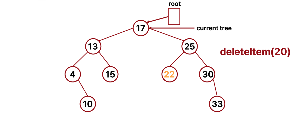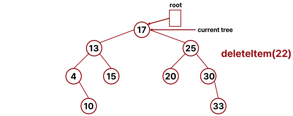 - 4. If it is less than the value stored at the root, then search the left subtree.