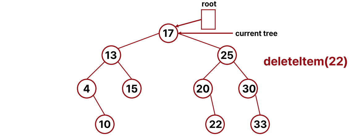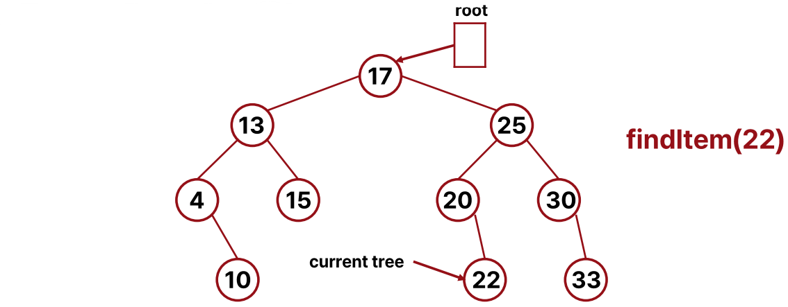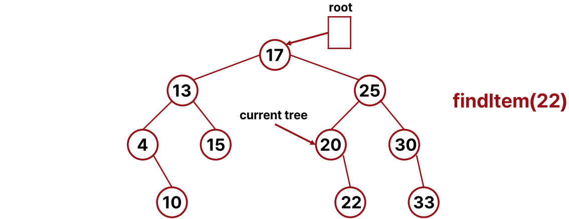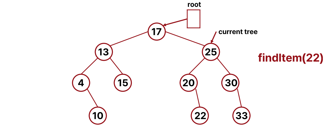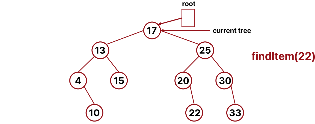 - 2. Compare the value of the item you are searching for with the value stored at the root