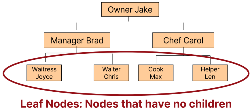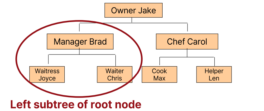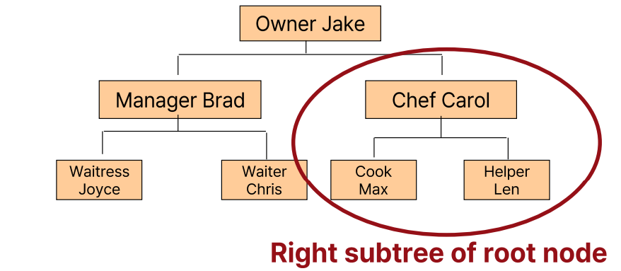 - Descendants of a node: any node on the path from that node to the last node in the path (child, grandchild, ...)