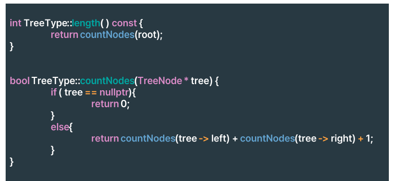 - 오른쪽 서브트리의 노드 수 countNodes(tree->right)