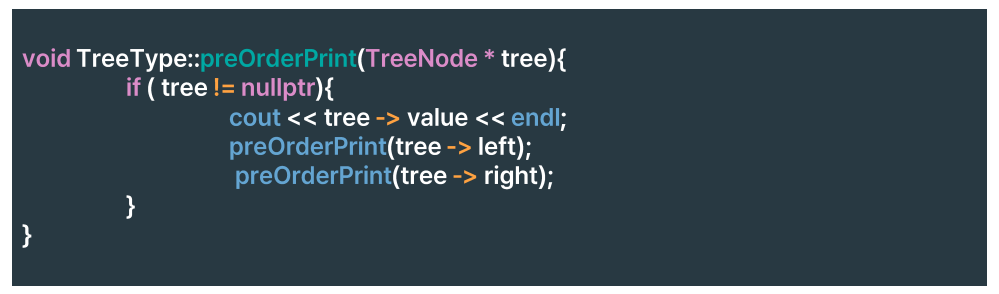 - Copy the tree - Preorder Traversal: root -> left -> right (DFS)