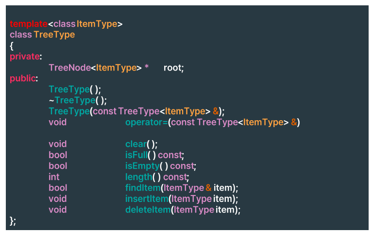 ※ TreeeType(const TreeType<ItemType> &); -> 복사 생성자를 통해 shallow copy가 아닌 deep copy로 새 객체 생성