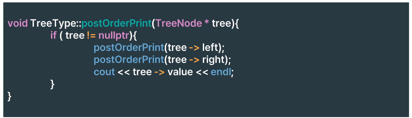 - Delete the tree - Postorder Traversal: left -> right -> root