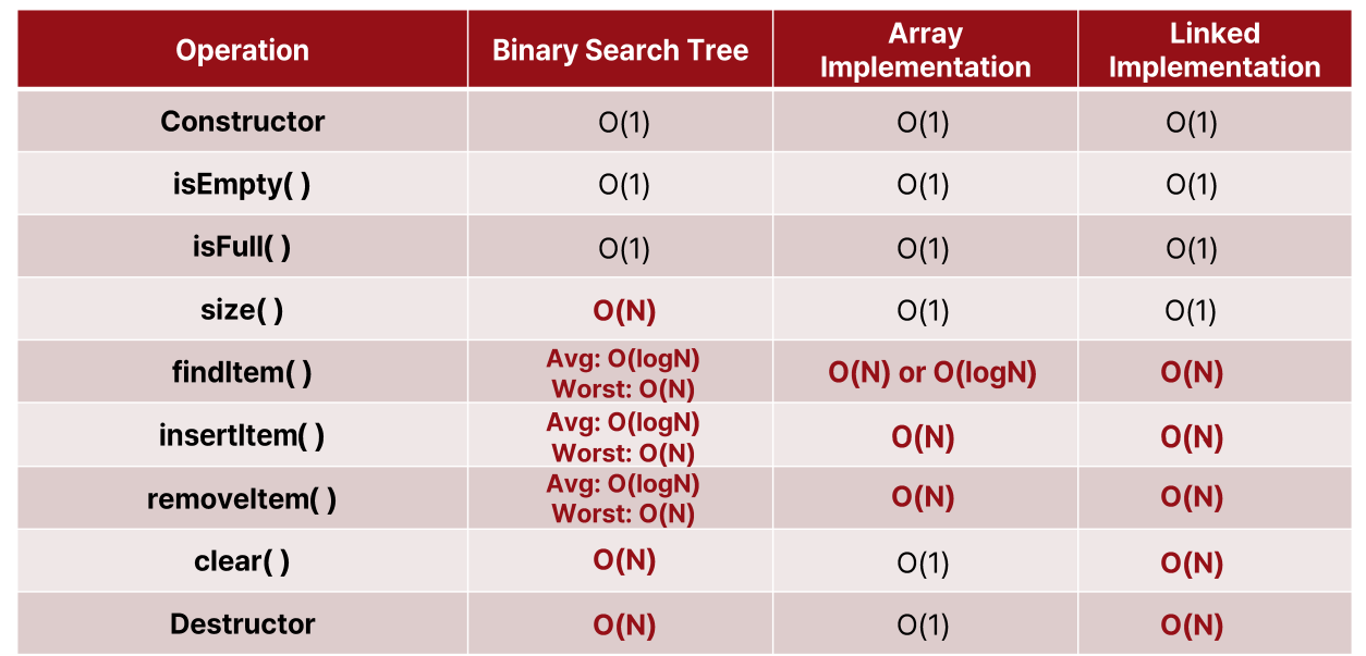- Time Complexity: O(N) (모든 노드를 한 번씩 다 살펴봐야 함, unsortedList와 비슷함)