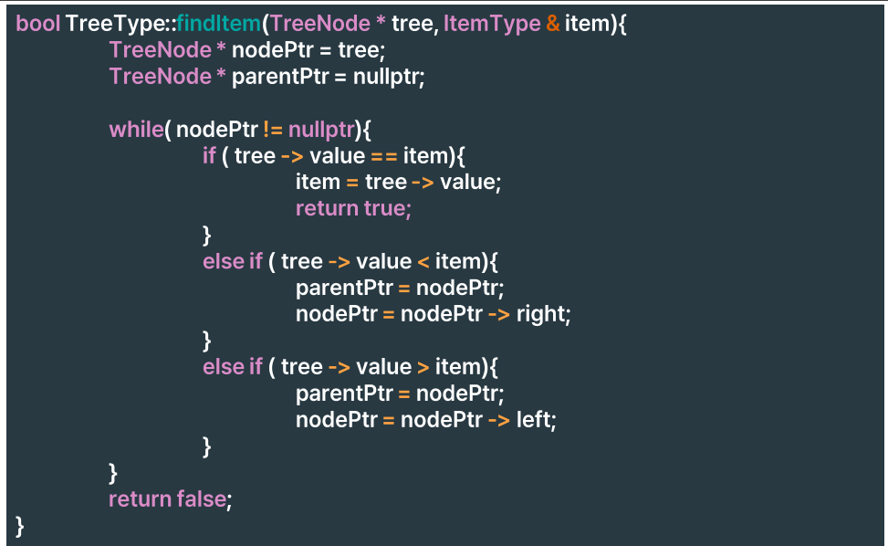 - 3. If the values are equal, then item found; otherwise, if it is a leaf node, then not found