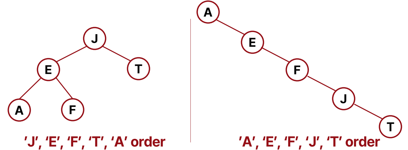 - The key value of each node in the tree is less than every key value in its right subtree and greater than every key value in its left subtree. (작으면 왼쪽, 크면 오른쪽)