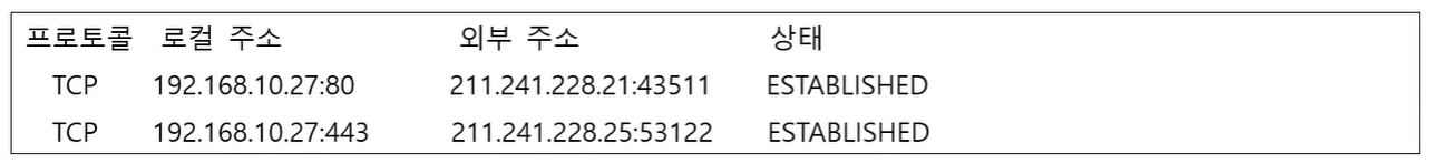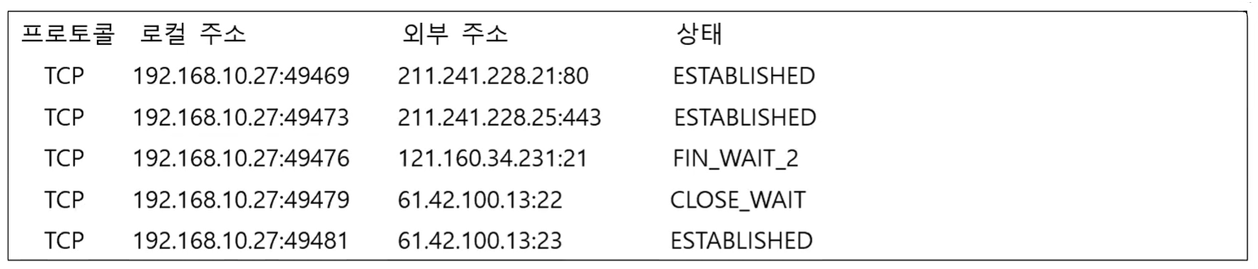 | Dynamic/PrivatePorts (49152~65535) | PC에서 사용하는 포트, 동적/ 사설 포트 |