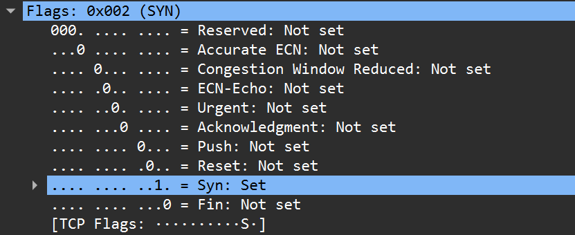 | 0 | 0 | 0 | 0 | 1 | 0 | 2 | 0x02 | syn |