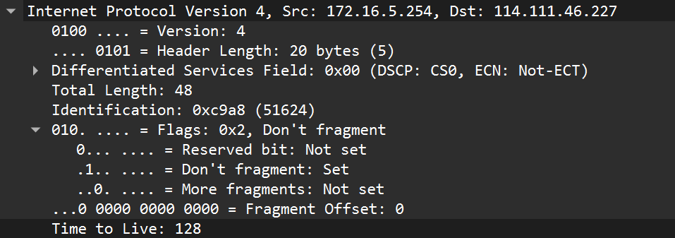 | Id | More fragments | Fragment offset | |